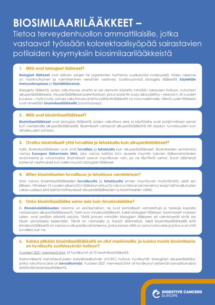 BIOSIMILARE – Ένας οδηγός για επαγγελματίες υγείας που προσφέρει απαντήσεις σε πιθανές ερωτήσεις ασθενών με καρκίνο του παχέος εντέρου για τα βιοομοειδή φάρμακα